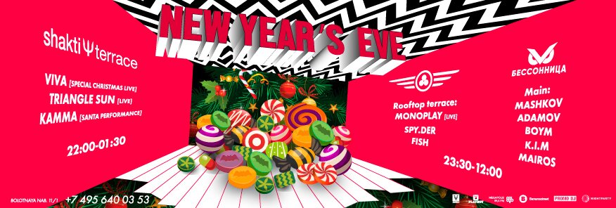 Бой курантов и брызги шампанского, песни, танцы, шутки и веселье ведущего — все это ждет гостей SHAKTI TERRACE на самом волшебном новогоднем празднике 2019!